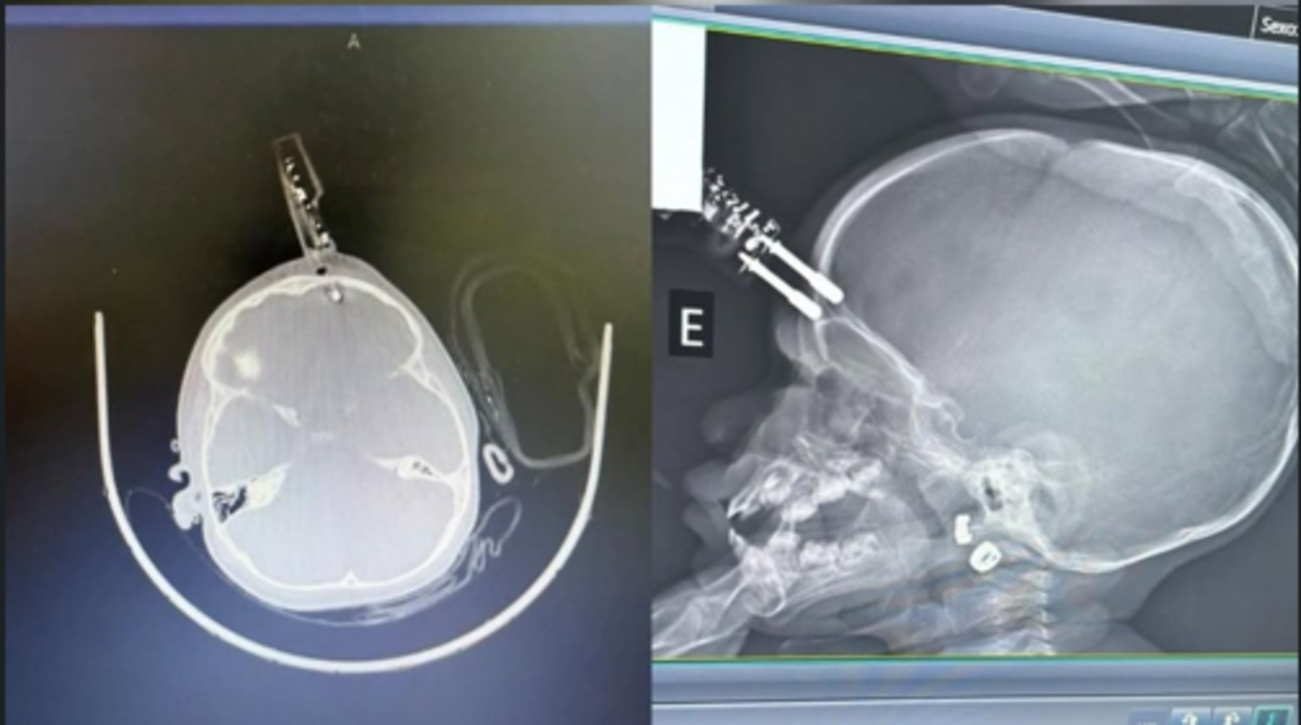 Bebê de 1 ano cai da cama e fica com carregador cravado na testa em MG