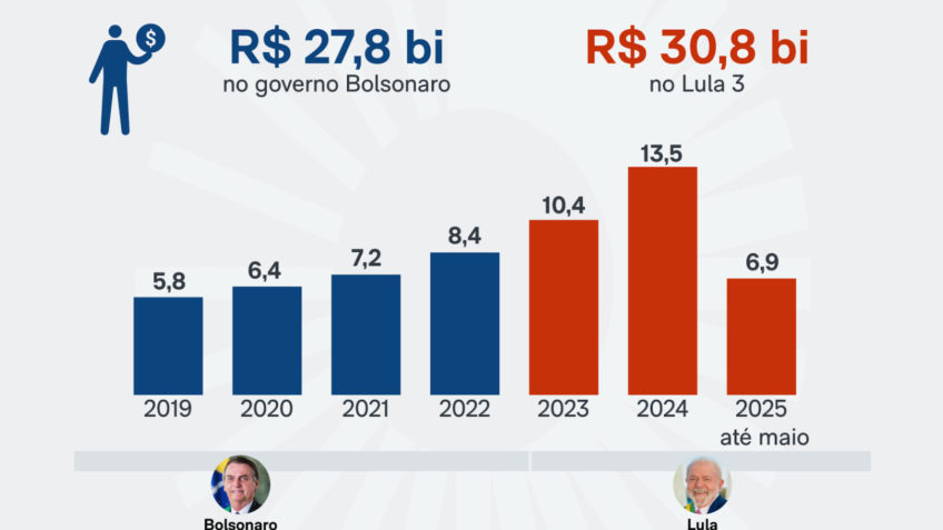 Esse montante já supera o total (R$ 27,8 bilhões) pago via judicialização no mandato do ex-presidente Jair Bolsonaro (PL), de 2019 a 2022. A estimativa foi calculada pelo Poder360. Entenda a metodologia ao final da reportagem.