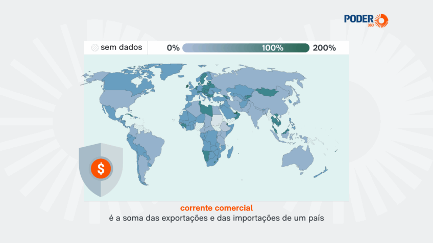 O infográfico abaixo mostra o nível de protecionismo dos países de acordo com a corrente comercial na proporção do PIB. Leia: