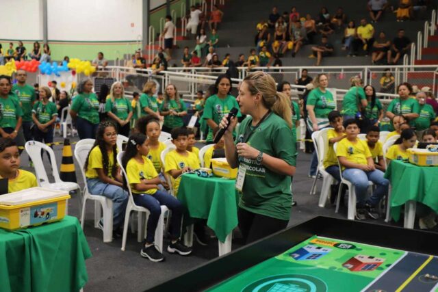 A prefeita Flávia Moretti (PL) prestigiou, na manhã do último sábado (29), no ginásio poliesportivo do Fiotão, o primeiro amistoso de robótica interescolar da rede municipal de Várzea Grande. O evento, promovido pela Secretaria Municipal de Educação, Cultura, Esporte e Lazer, por meio do Núcleo Educacional Tecnológico (NET/VG), reuniu professores e alunos de oito escolas municipais, juntamente com o Festival de Invenção e Criatividade (FIC), realizado simultaneamente em parceria com a Superintendência Pedagógica da SMECEL.