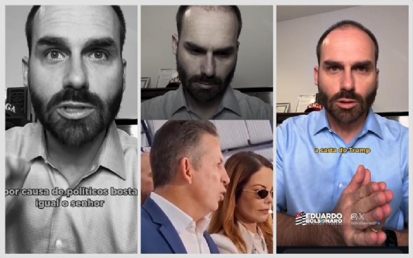 As duras críticas do governador Mauro Mendes (União) ao deputado federal Eduardo Bolsonaro (PL-SP) repercutiram lá nos Estados Unidos e o filho “03” do ex-presidente Jair Bolsonaro (PL) fez questão de reagir nas redes sociais. Em vídeo publicado nas principais plataformas, Eduardo “tira o corpo fora” da taxação imposta ao Brasil e tenta colocar a culpa única e exclusivamente na conta do ministro do Supremo Tribunal Federal Alexandre de Moraes. Ao final, lança a Mendes um “desafio”: que o governador mobilize sua base em Brasília para aprovar, o quanto antes, a anistia ao ex-presidente Jair Bolsonaro, condenado no STF. A crítica de Mendes que gerou todo esse ‘bafafá’ foi pelo fato de Eduardo, recentemente, ter atacado o governador de São Paulo, Tarcísio de Freitas (Republicanos). Esse ponto da discussão, no entanto, Eduardo ignorou. Veja o vídeo abaixo: