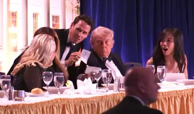 Muitos dos 2.600 participantes do jantar neste sábado em Washington se abrigaram enquanto os garçons corriam para a frente do salão. A multidão gritou “abaixem-se, abaixem-se!”, conforme relatos de jornalistas presentes.