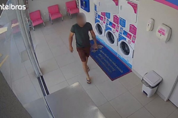 Em um vídeo divulgado pela Polícia Civil, é possível ver o suspeito em ação dentro da lavanderia na sexta-feira (24) à noite. Ele aparece colocando roupas no cesto e saindo do estabelecimento.