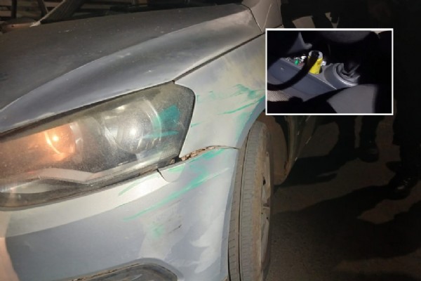 Ao avistar a viatura, o motorista do veículo VW Gol saiu em alta velocidade na tentativa de fugir da guarnição. Ele acabou colidindo contra dois motociclistas na rotatória que liga a Avenida Alzira Santana com a Avenida Castelo Branco.