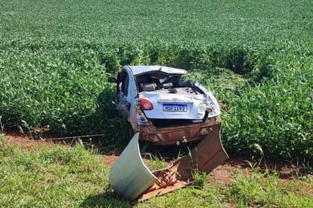 MS: carro com família capota ao tentar desviar de buraco em rodovia