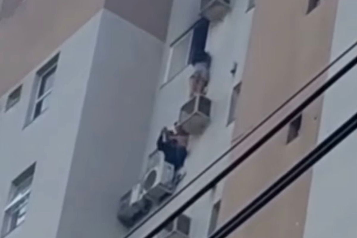 No dia 15 deste mês, um incêndio atingiu um apartamento do 13º andar de um prédio em Cascável, no oeste do Paraná. Imagens feitas por testemunhas mostram o momento em que Juliane sobe na caixa de ar-condicionado para salvar a vida da mãe e da criança.
