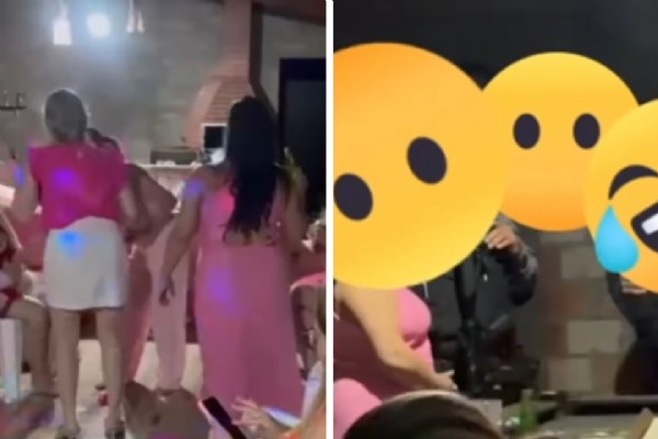 Eles bateram palmas, mas como ninguém apareceu, caminharam até os fundos da residência. Lá, encontraram as mulheres fantasiadas e a noiva de lingerie. As convidadas chegaram a filmar a cena, pensando se tratar de uma surpresa.