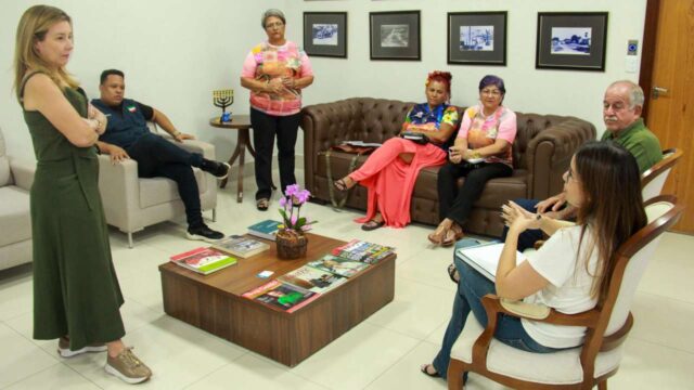 A Prefeita de Várzea Grande, Flávia Moretti (PL), recebeu em seu gabinete o grupo de artesãs “Mulheres Arteiras”, do bairro Mapim. O encontro teve como objetivo discutir a busca por apoio para a reativação do Centro Comunitário do bairro Cabo – está fechado -, pois o grupo planeja transforma o espaço em um ponto de venda para os produtos artesanais que produzem.