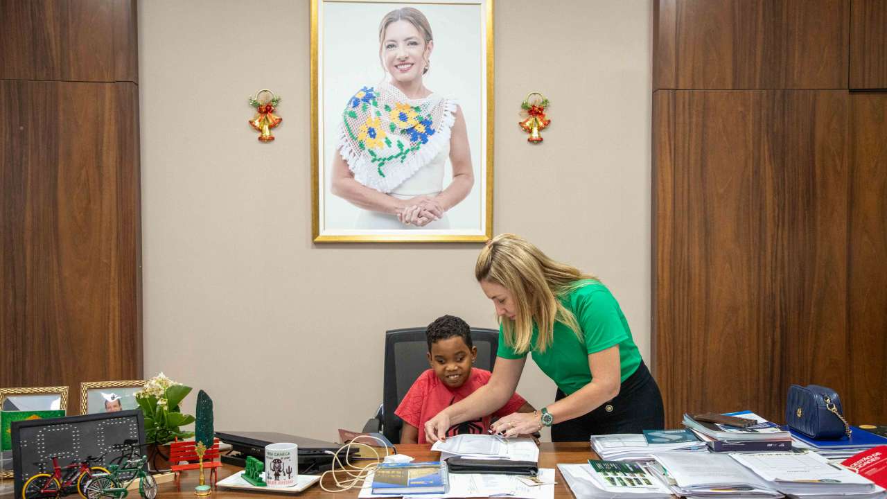Pedro, que enfrenta estrabismo grave, já perdeu a visão do olho esquerdo e possui visão severamente comprometida no direito, realizou o sonho de conhecer a prefeita e viver um dia como chefe do Executivo municipal antes de uma nova cirurgia, que envolve risco de cegueira total.