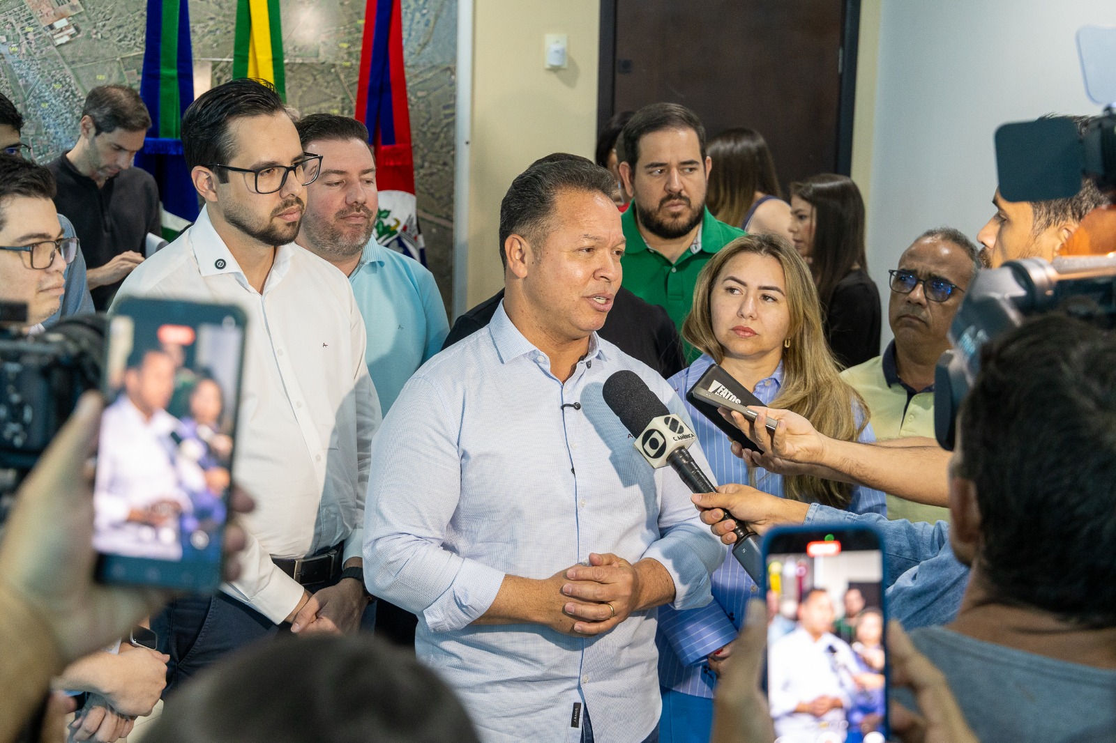 A coletiva de imprensa foi acompanhada por vários representantes da gestão municipal e pelos vereadores Ibrahim Zaher, Alikson Reis, Wellington Pereira e Renan Dourado.