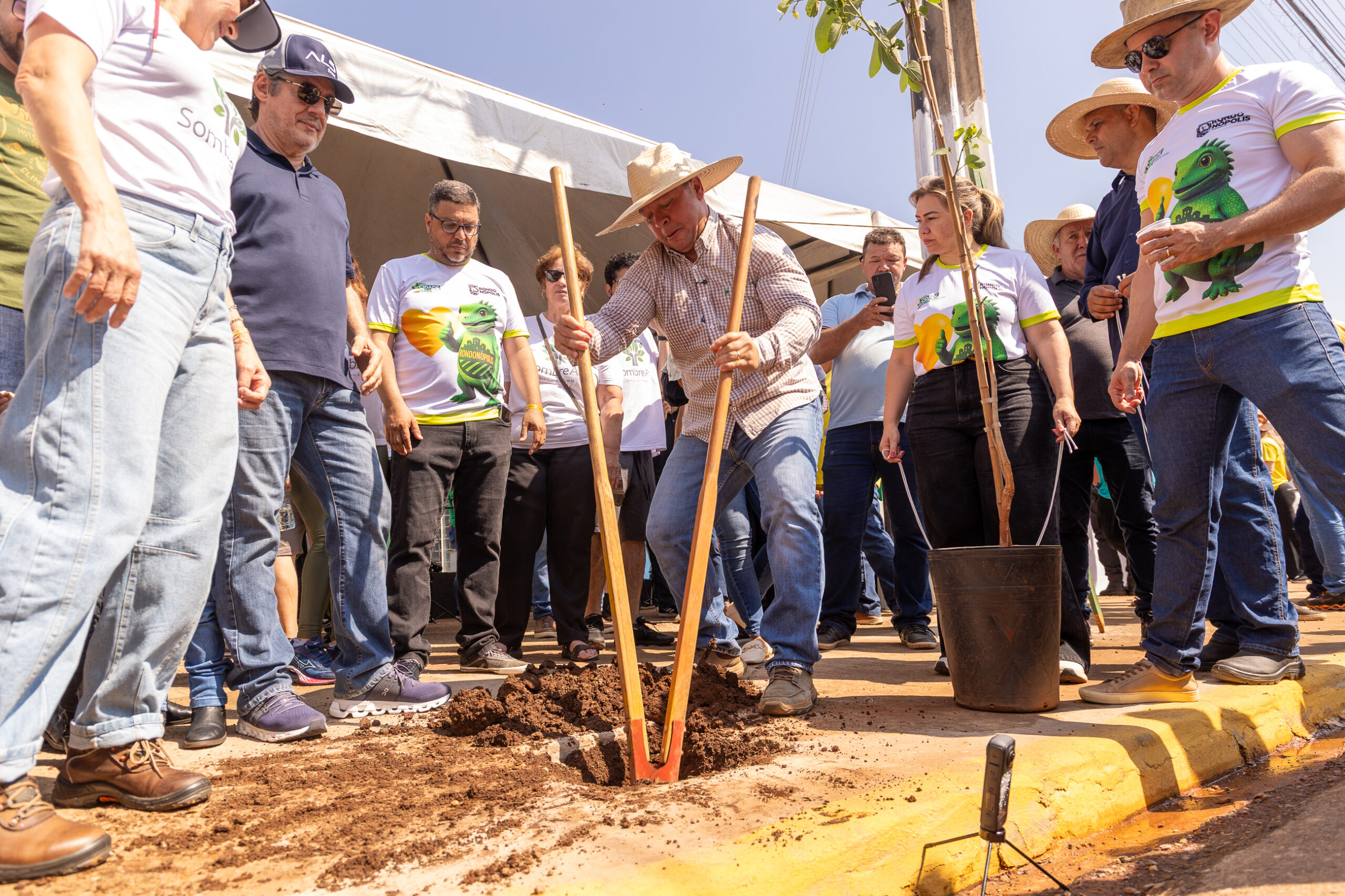 Prefeitura de Rondonópolis | Prefeito lidera plantio de mudas na avenida Bandeirantes