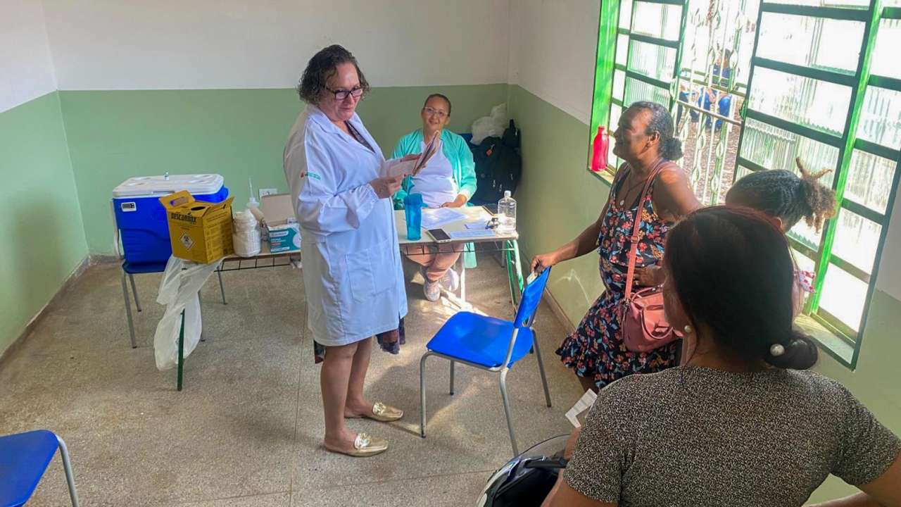 Na comunidade rural do Sadia, a equipe da Unidade de Saúde da Família (USF), do Distrito do Limpo Grande, levou a estrutura de atendimento até o ponto de apoio da comunidade Nossa Senhora Aparecida. Durante a ação, foram aplicadas 57 vacinas, distribuídas duas doses de vitamina A, realizados três exames de CCO (preventivo do colo do útero), sete testes rápidos para detecção de Infecções Sexualmente Transmissíveis (ISTs), além de três pesagens do Bolsa Família.
