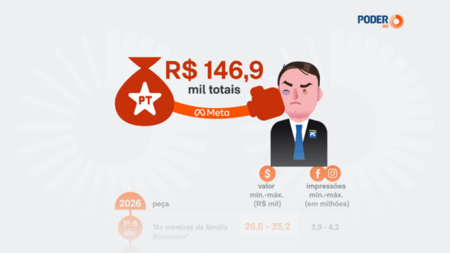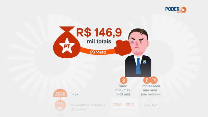 O PT pagou ao menos R$ 146,9 mil para impulsionar, em abril, 6 vídeos com críticas ao pré-candidato do PL à Presidência, o senador Flávio Bolsonaro. O conteúdo foi exibido mais de 18 milhões de vezes no Facebook e no Instagram.