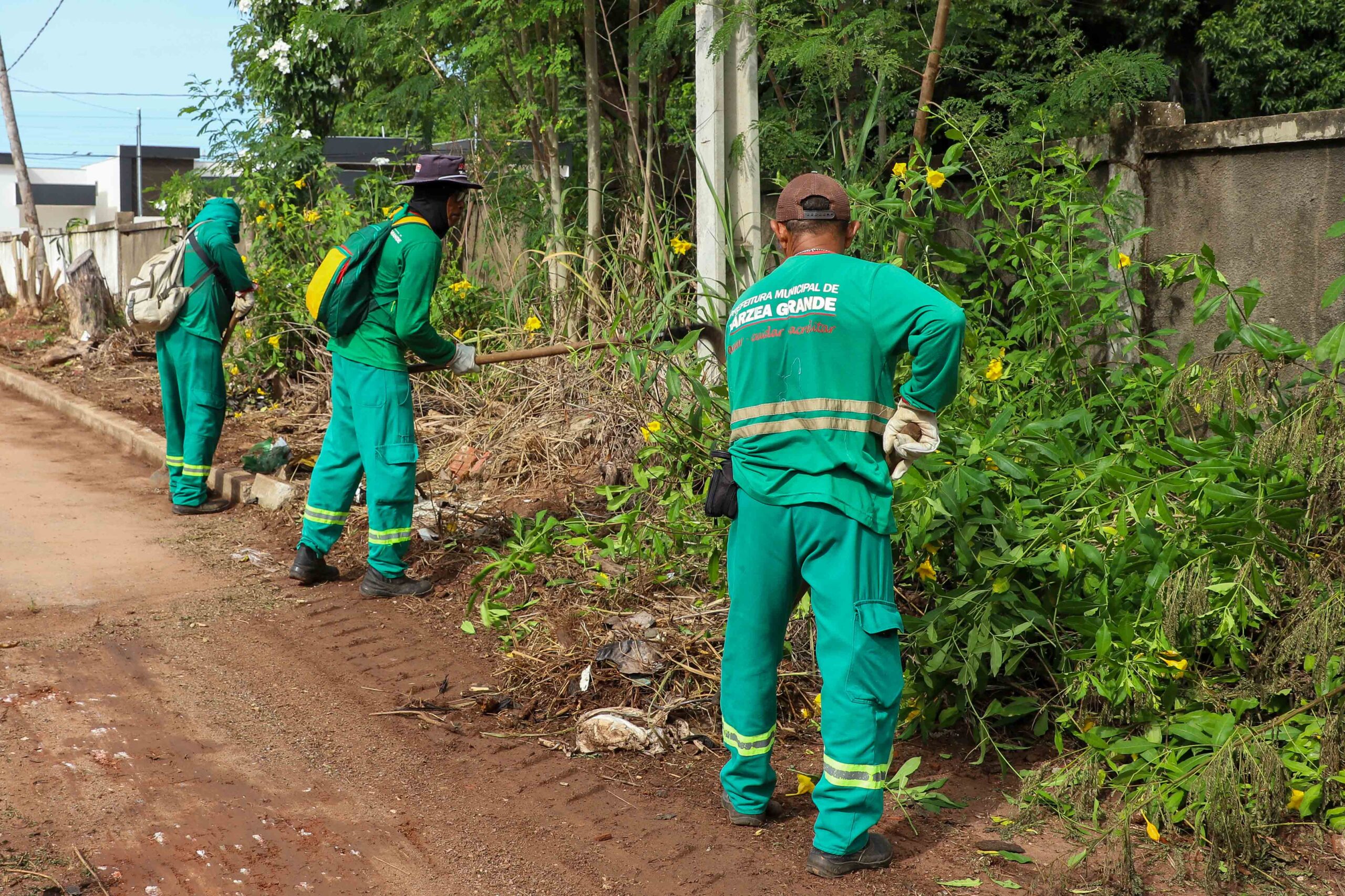 A Prefeitura de Várzea Grande, por meio da Secretaria Municipal de Serviços Públicos e Mobilidade Urbana (SSPMU), realizou nesta sexta-feira (6) mais uma etapa do programa VG em Ação, reforçando os mutirões de zeladoria, limpeza e manutenção urbana em diversas regiões do Município, com destaque para bairros de grande concentração populacional.