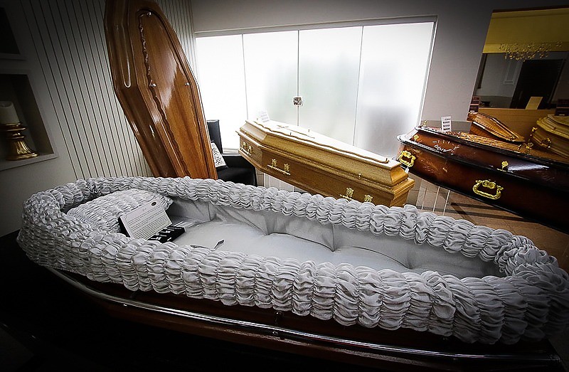 Na categoria primeira classe, os valores vão de R$ 1.903,67 até R$ 3.945,27, enquanto os funerais de luxo chegam a R$ 11.910,46, no modelo “tipo charuto” ou “eterna”, o mais caro da tabela.