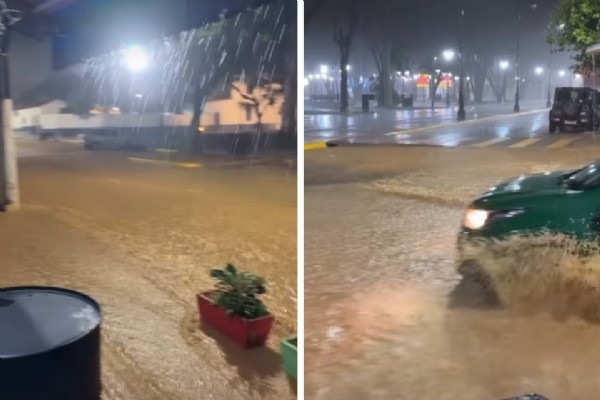 Uma forte chuva atingiu Chapada dos Guimarães nesta quarta-feira (10) e transformou ruas da cidade em verdadeiras correntezas. Em um vídeo gravado na conhecida “esquina mais charmosa” e divulgado pela página “Ixpia Chapada”, a água é vista invadindo com força um estabelecimento comercial. Os veículos que trafegavam pelo local também enfrentaram dificuldades. Até o momento, não há registros de danos. De acordo com a Climatempo, a previsão para esta quinta-feira (11) indica sol com aumento de nuvens ao longo do dia, seguido de pancadas de chuva a partir do fim da manhã e durante a tarde. À noite, a expectativa é de um novo temporal.