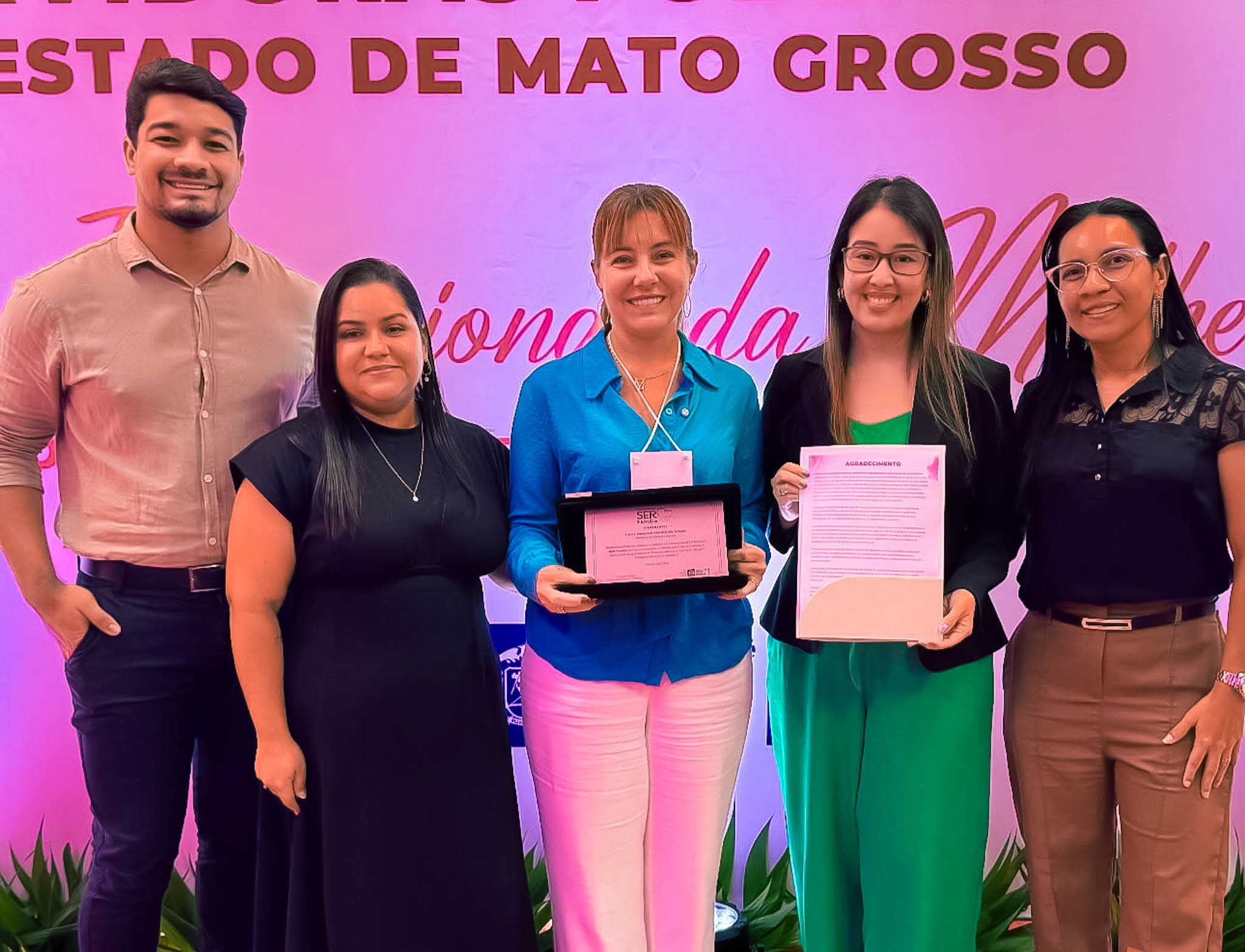 A prefeita de Várzea Grande, Flávia Moretti, e a secretária municipal de Assistência Social, Cristina Saito, receberam das mãos da primeira-dama de Mato Grosso, Virginia Mendes, uma homenagem de reconhecimento pelo trabalho desenvolvido na execução do Programa Ser Família, idealizado por Virginia, executado pela Secretaria Estadual de Assistência Social e Cidadania (SETASC), com municípios.